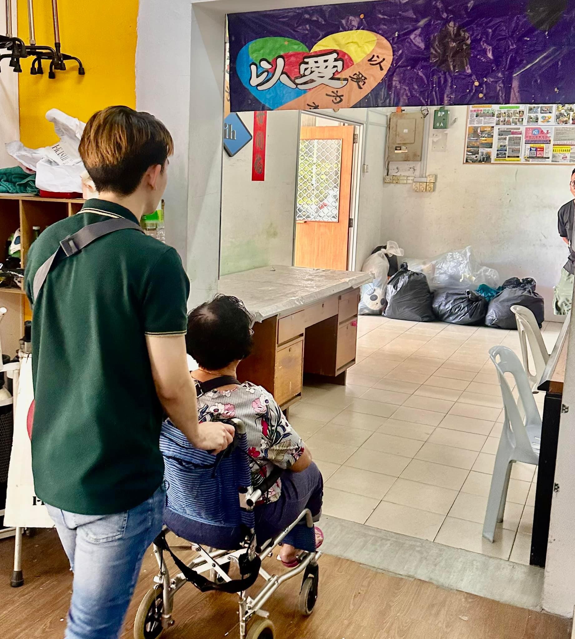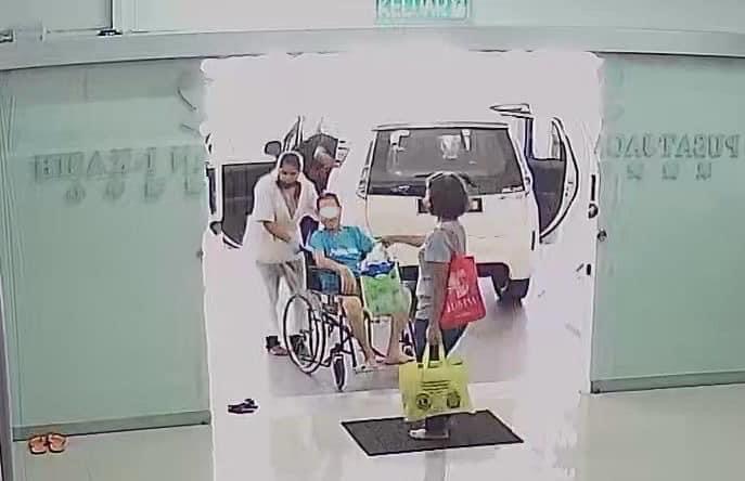 阿Teh坐在轮椅上由护士协助推他去车旁,他的太太则左一包右一包地拿着他所有的物品,阿Teh“出院了”。。。。