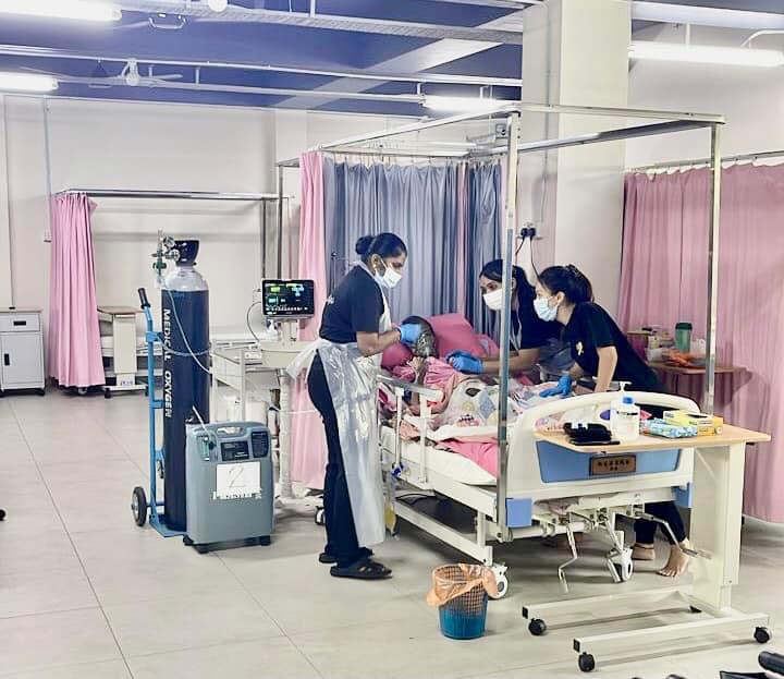 与她见面的时候就问了老人家的病因和病况,她说了但我听不懂,只是知道老人家已经很虚弱,讲话没有力,也不大可以吃,医院也表示没有什么可以做了,她告诉我她也知道她的老公不久了,但是她住的是kampong屋,孩子要工作,家里只有她自己一个瘦弱的人根本没有能力照顾病人。。。。说到这里她哭了……这是无助的泪。