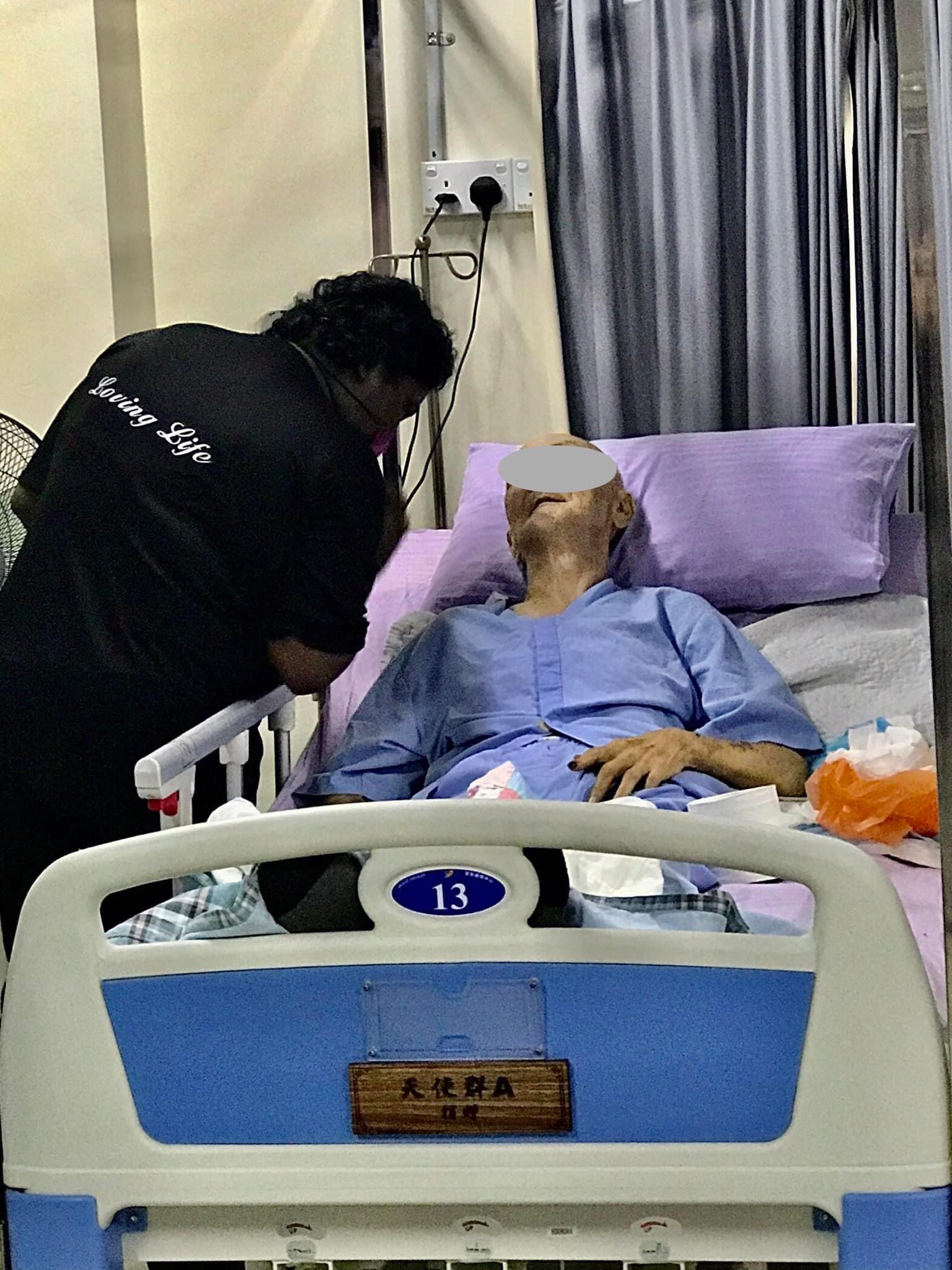 刚才8点多去安宁中心是为了迎接一位新贵宾张先生入住,刚好看到护理人员和另一张病床Mr kho的互动这一幕就快快拍了下来,护理人员问Mr Kho:“Uncle you want Milo?”Mr Kho 脸带笑容地摇摇手表示不要,这一幕就像爷爷和孙女间的互动………………,Mr Kho是几天前才住进来的贵宾癌友,76岁的他肺癌末期而且扩散多处,家里只有他和他的太太JC两人相依为命,两夫妻都是“angmo”派,还记得当时是JC联络我,她说是医院的医生介绍她找我,然后我就向她了解了大概情况后就告诉她没有问题,完全符合条件,欢迎uncle Kho住进来安宁中心,挂下电话不久JC又再次联络我,这次她说:“听别人说还有另一间临终关怀中心是吗?”我说:“是的,我现在给你他们的电话号码,你可以打电话去了解了才决定,最重要的是病患得到照顾,家人得到帮助,去哪里都没有关系的”,就这样我给了她那边的电话。。。不一会儿她又在联络我说:“Mr Wong 不用问了,就决定去你那边吧!刚才医生又说最好去你那边,医生介绍的一定没有错”。