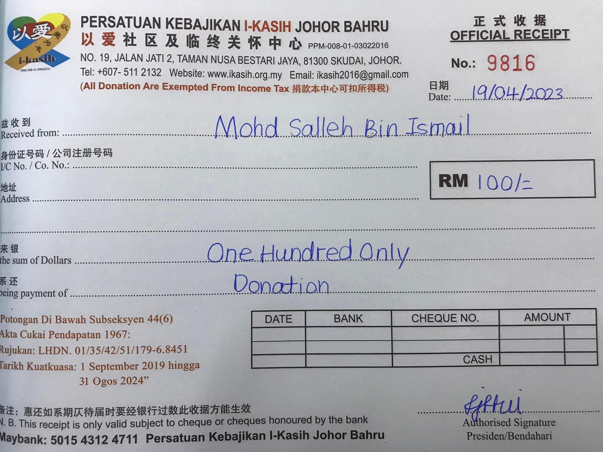 杂锦Rojak区 2023年4月22日 点击数:291 友族也參與捐款了⋯⋯ 这位友族老兄把之前借去的病床載回来以爱,按照规定我们都会退回三百元的抵押金,于是书记就把三百块退还给他,在办完退款手续后,这位老兄拿一百块交给书记,他说要捐款支持以爱。。。 Continue Reading