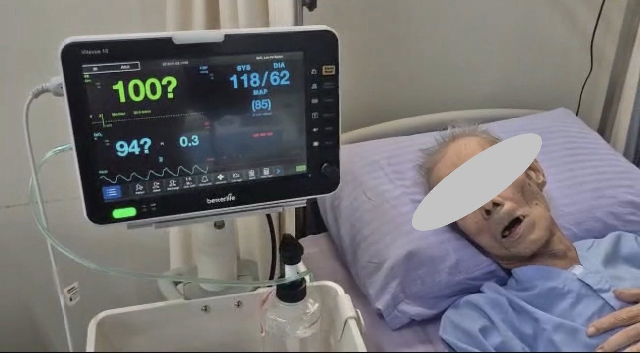 早上护士察觉到En Salleh不对劲,于是就赶紧使用仪器检查,生命体征仪器显示不稳定的问号,这代表着他有危险了,于是护士就马上供应氧气,很快的指数暂时恢复了正常,是的,暂时,因为一般上如果病患出现这样的状况代表他的病情进入恶化阶段,也就是说从这刻开始他就要24小时靠“外部氧气设备”来供应氧气了,虽然Salleh 他是膀胱癌不是肺癌,但由于癌细胞已经开始侵蚀体内各部位包括内脏,所以导致身体没有能力正常制造氧气,这时候氧气机就是维持生命的必须器材了,谢谢所有捐赠各种机器包括氧气机的天使们,让临终病患在最后阶段还可以舒适的呼吸只因有您慷慨的捐赠,本中心代表受惠的临终病患谢谢并祝福大家都健康平安![]()