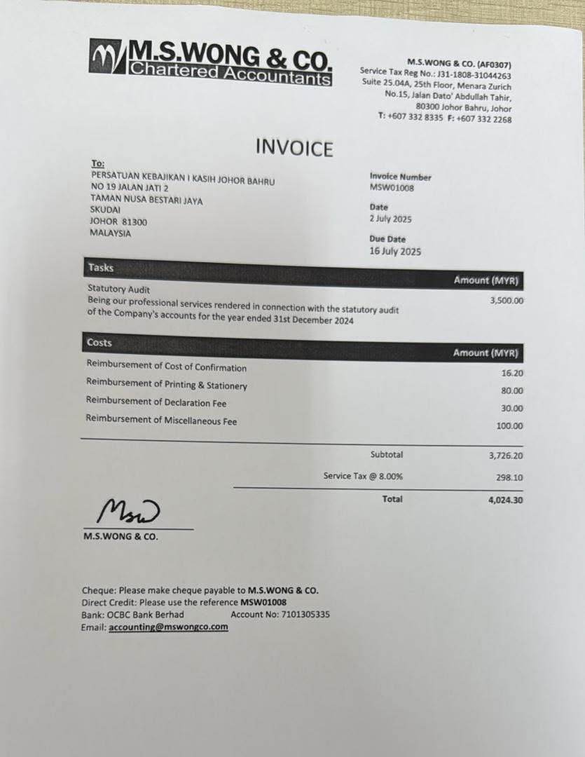 作为合法的慈善组织有些钱真的省不了,尤其是账目必须由第三方稽查公司查账然后才呈上给国家税务局和社团注册局才算是一个段落,这是每年重复必做的事,虽然花费不少,而且也很繁琐,但要做到财务透明,除了符合政府的规定以外也要向捐款者有交代,我认为这才算是一家负责任的慈善机构。