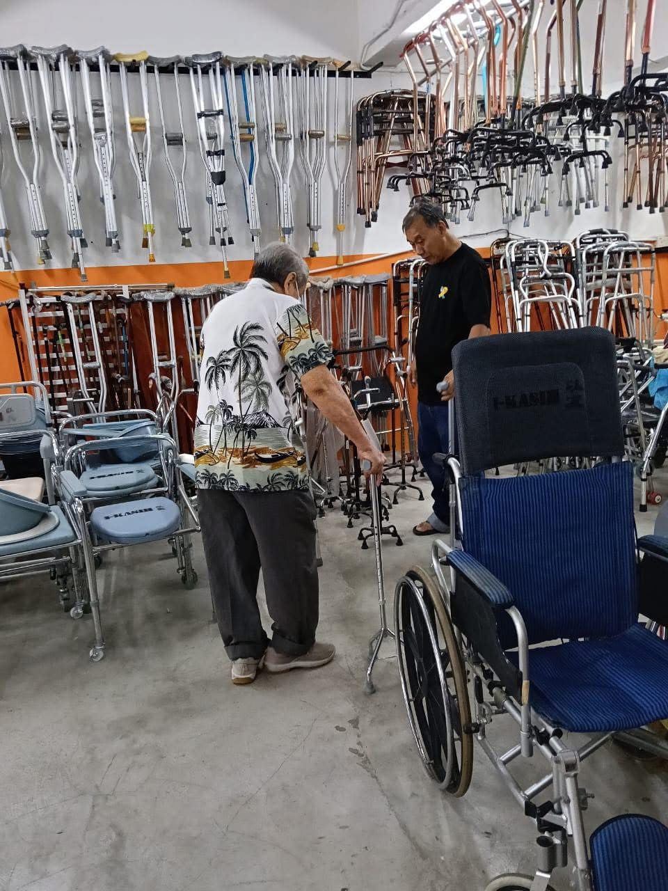 老大哥来借拐杖,看到这拐杖阵容真不是盖的,琳琅满目各种各样各款各式的拐杖都有,不夸张的说数量真的比专卖店还多,只要有需要总有一种适合你,欢迎有需要的朋友前来以爱这里免费借用,没有使用期限。
