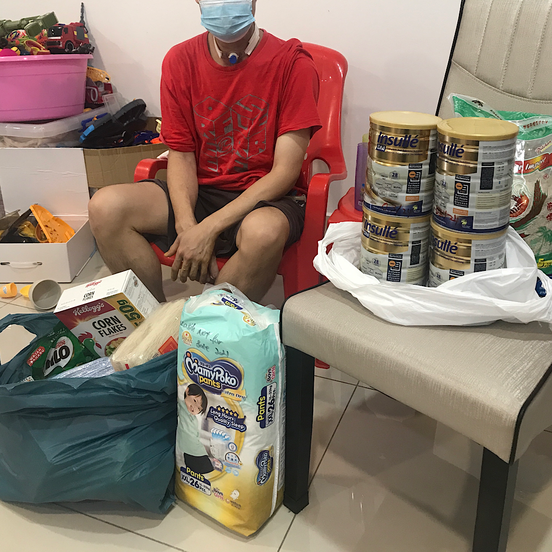 星期六原本是中心的休息日,因为刚好有些事要办所以就回中心一趟,来到门口要找停车位的时候就看到这位老兄在以爱门口走来走去,神色慌张还不时摇晃以爱的铁门,停好车后我就走向前问他有什么事吗?他告诉我紧急需要轮椅,因为他的太太从楼梯摔下来两脚都受伤,而他们现在又要赶飞机回去Jakarta,附近的居民就叫他来以爱寻求帮助。。。