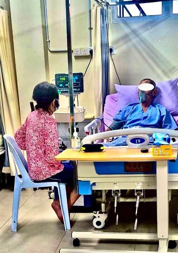 前天就开始出现状况,昨天进入危险期,因为他唯一的妹妹人在kl,为了不想她感到太突然,于是在昨天就通知了她,要给她心理准备,我跟她说:“你半夜不要关电话,我随时会打来报恶讯。”