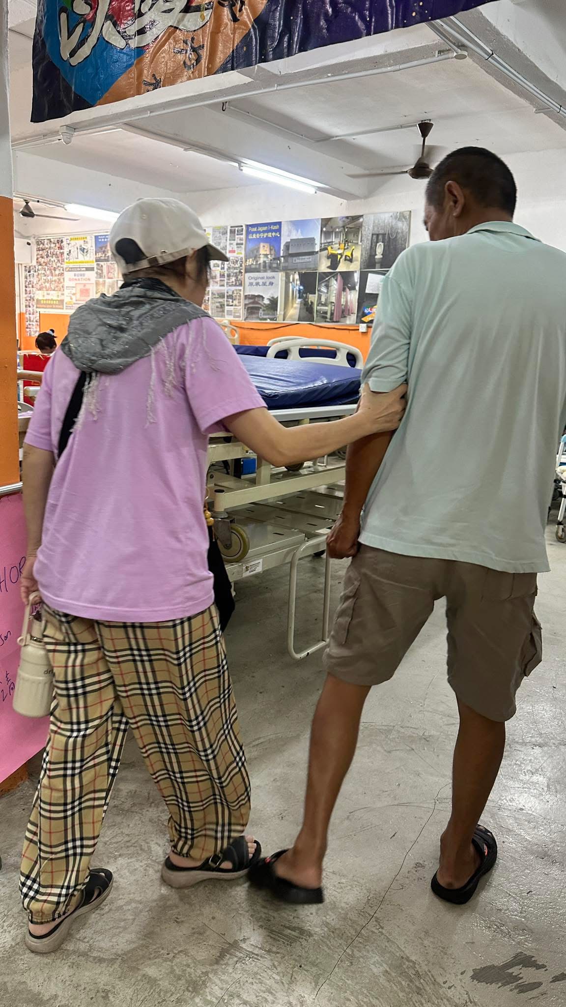 人,唯一的妹妹在kl定居,9月中旬才由友会ICARE Cancer Support Association JB 新山癌症互助协会转介进来,他是属于内向腼腆的性格,总是静静的在那躺着,当看到我的时候他会很有礼貌地笑笑打招呼,偶尔他会精神失常,那是因为止痛药物的副作用导致,与他本性无关,如今的他静静的躺在安息室内,无论过去的他是个多么叱咤风云的英雄又或者是草根人物都不重要了,他的人生从此画上了句号。。。。。