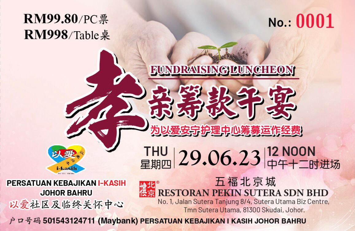目的/Aim: 为以爱安宁护理中心筹募运作经费 Fundraising for Pusat JagaanI Kasih