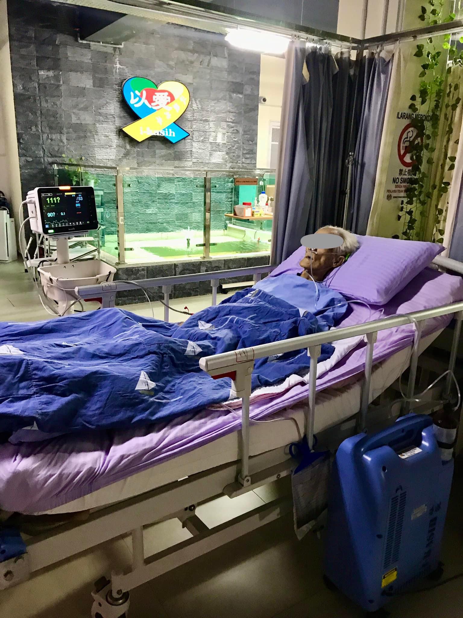 两天前我去探访的Uncle We 今天住进来了,我特地安排他在这个10号床位,这是最靠近露天鱼池的床位,让他可以听听水声可以感受天气的变化……